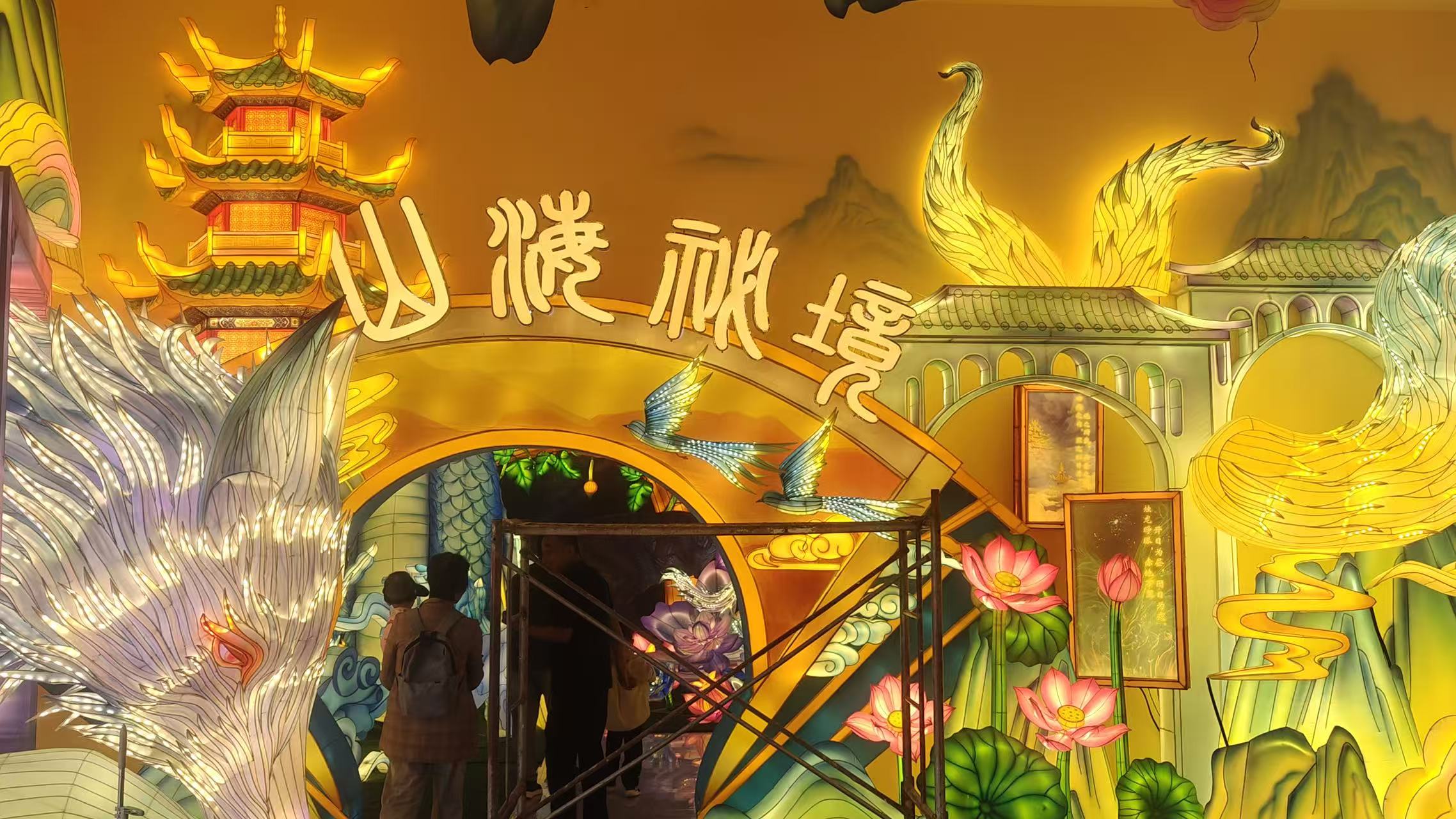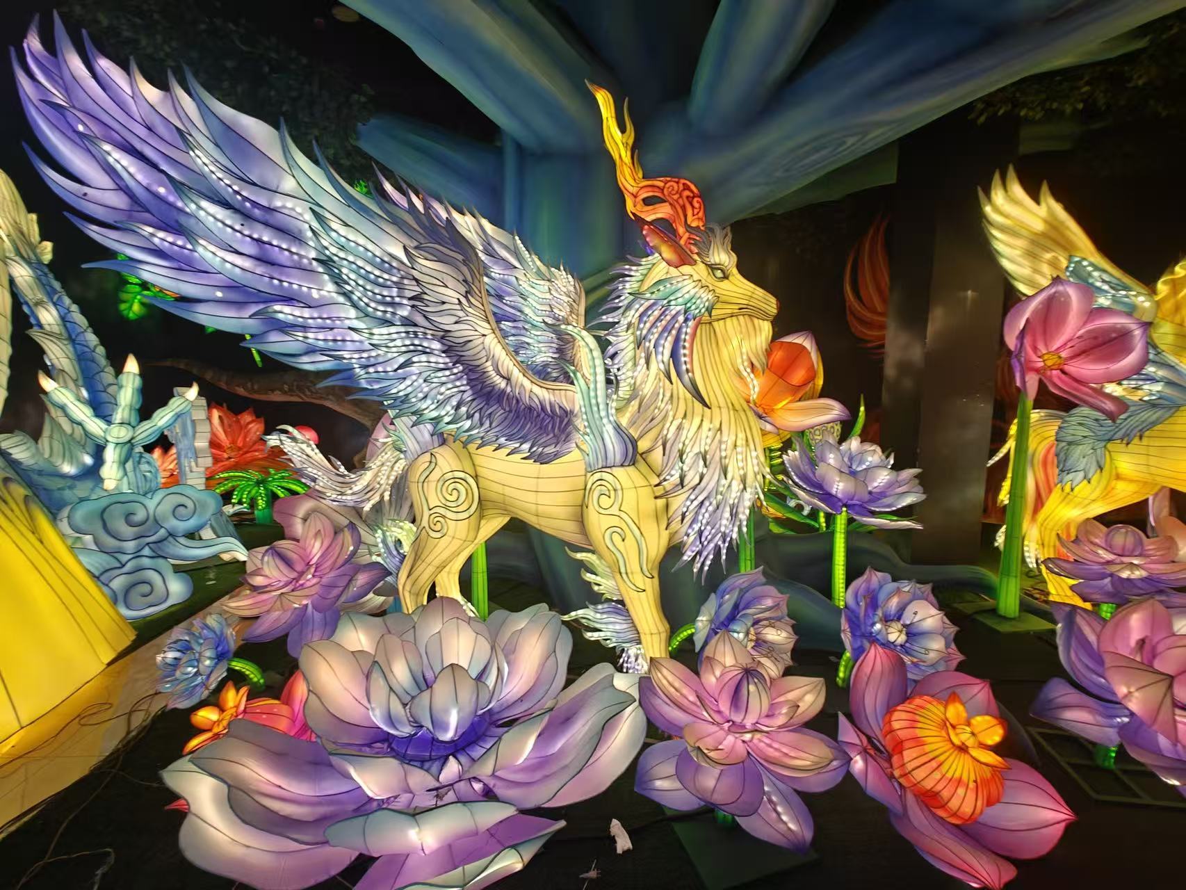 作為國(guó)內(nèi)目前規(guī)模最大的花燈展廳,意樹(shù)文化團(tuán)隊(duì)以 “還原上古宇宙” 為目標(biāo),打造出涵蓋三大主題展區(qū)的燈影秘境。從前期研讀《山海經(jīng)》《淮南子》等典籍繪制百?gòu)堅(jiān)O(shè)計(jì)圖,到組織 60 余名工匠歷時(shí) 3 個(gè)月手工制作,團(tuán)隊(duì)始終堅(jiān)守嚴(yán)苛標(biāo)準(zhǔn):焊工需保證每處骨架接口誤差不超 1 毫米,裱糊工為呈現(xiàn)神明衣袂飄逸感,需徒手拉伸絹布至精準(zhǔn)張力,美工則參照出土文物紋樣復(fù)原上古圖騰。